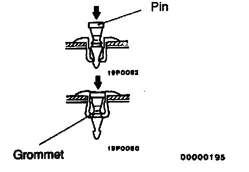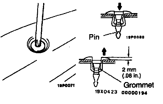 (2) Push the pin inward until the pin's head is flush with the grommet.