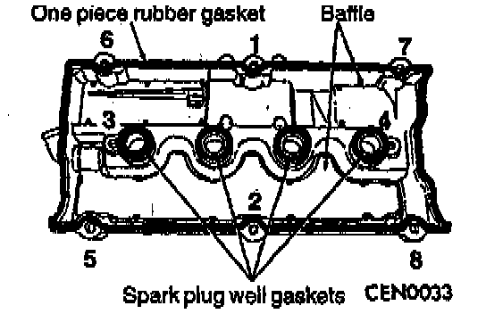 Install the cylinder head cover assembly to the head and tighten fasteners in sequence shown. Tighten all fasteners according to the 3-step torque method.