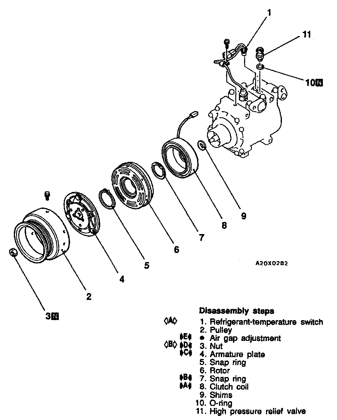 When installing the clutch coil to the NC compressor body, install so that the pin hole of the A/C compressor body and the clutch coil projection are aligned.