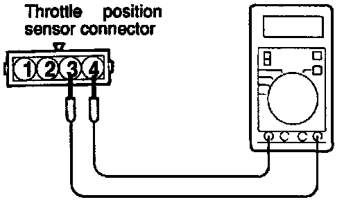 2. Check the continuity between the throttle position sensor connector side terminal 3 and terminal 4.