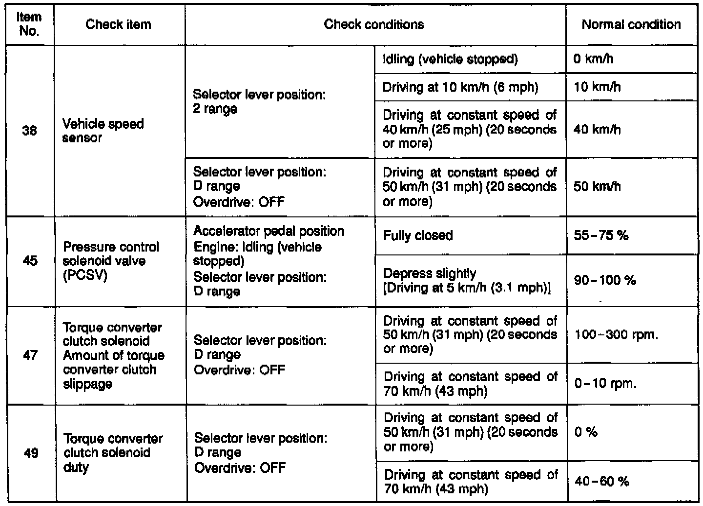 Inspection Using Scan Tool, Road Test and Data List