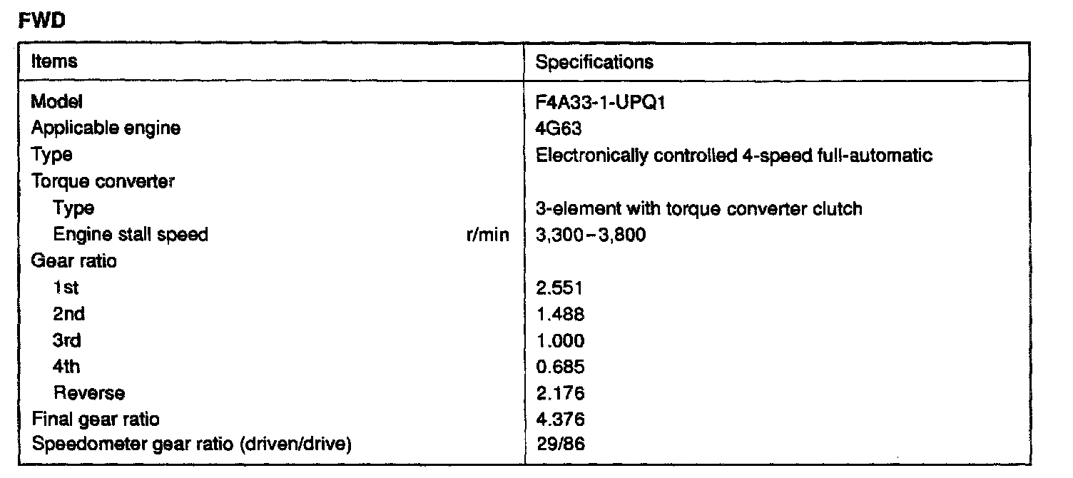 F4A23/F4A33 4-spd A/T, Gear Ratios ('96):