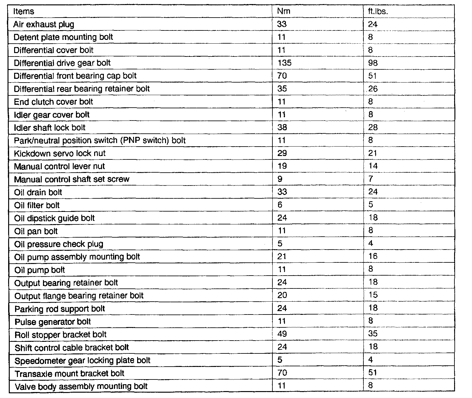 F4A33/W4A33 4-spd A/T, Transaxle Torque: