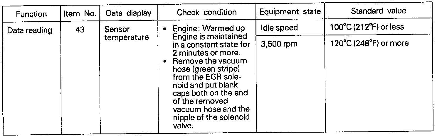 6. If there is a significant deviation from the standard value replace the EGR Temperature sensor.