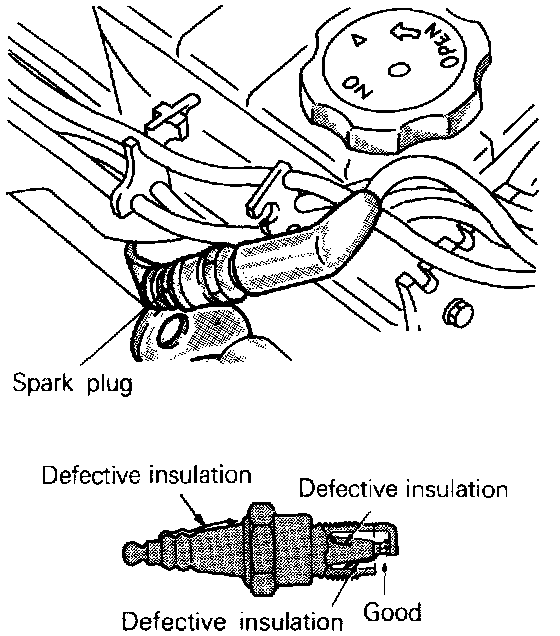 2. Ground the spark plug outer electrode (body), and crank the engine.