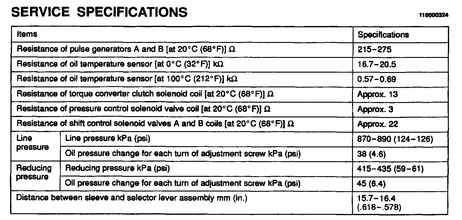 F4A23/F4A33 4-spd A/T, Standard Values & Limits: