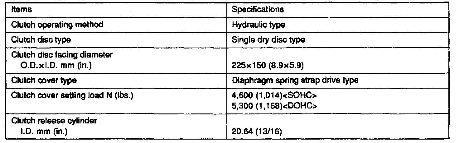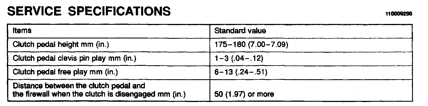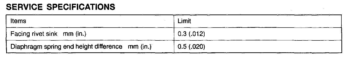 F5M31 5-spd M/T, Clutch Standard Values: