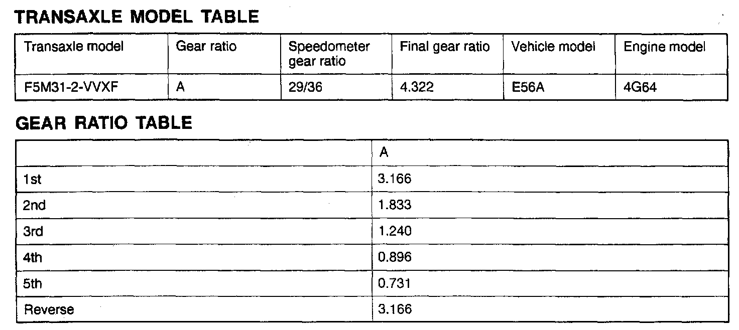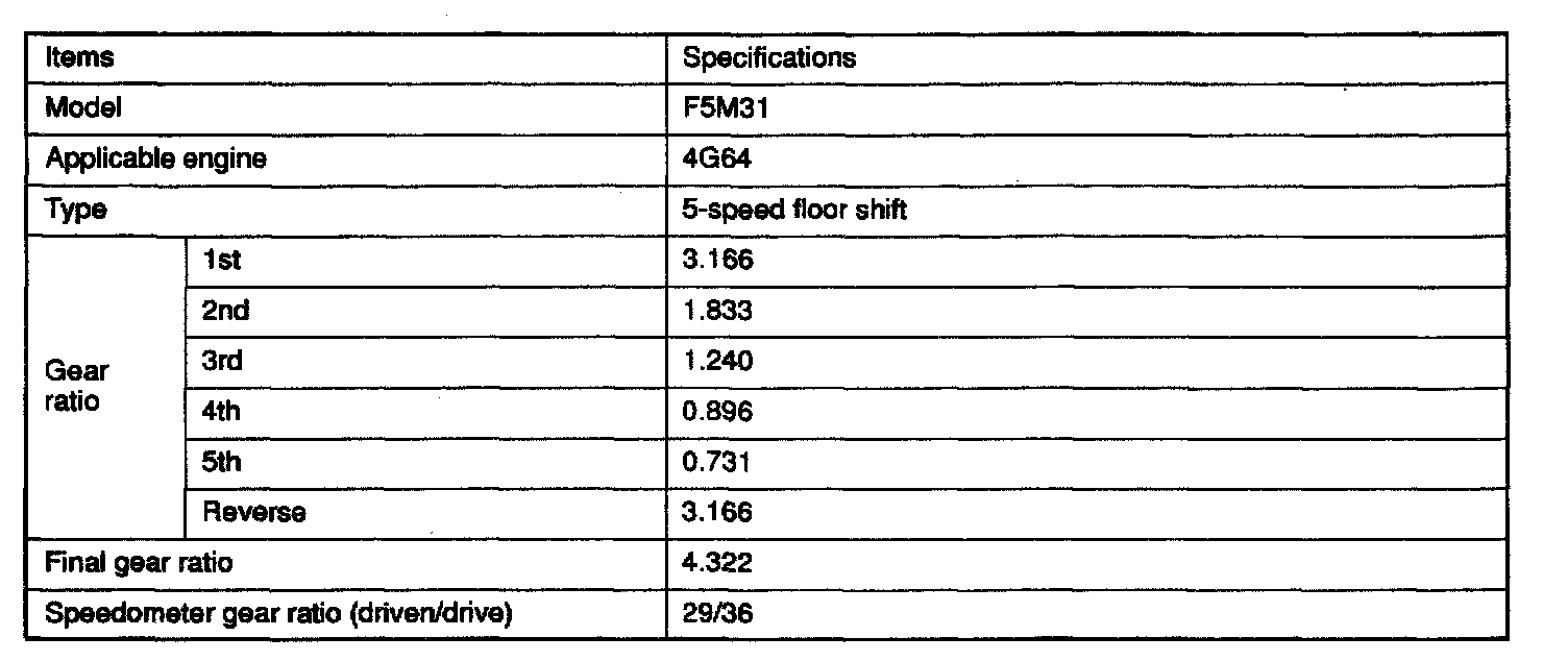 F5M31 5-spd M/T, Gear Ratios ('96):