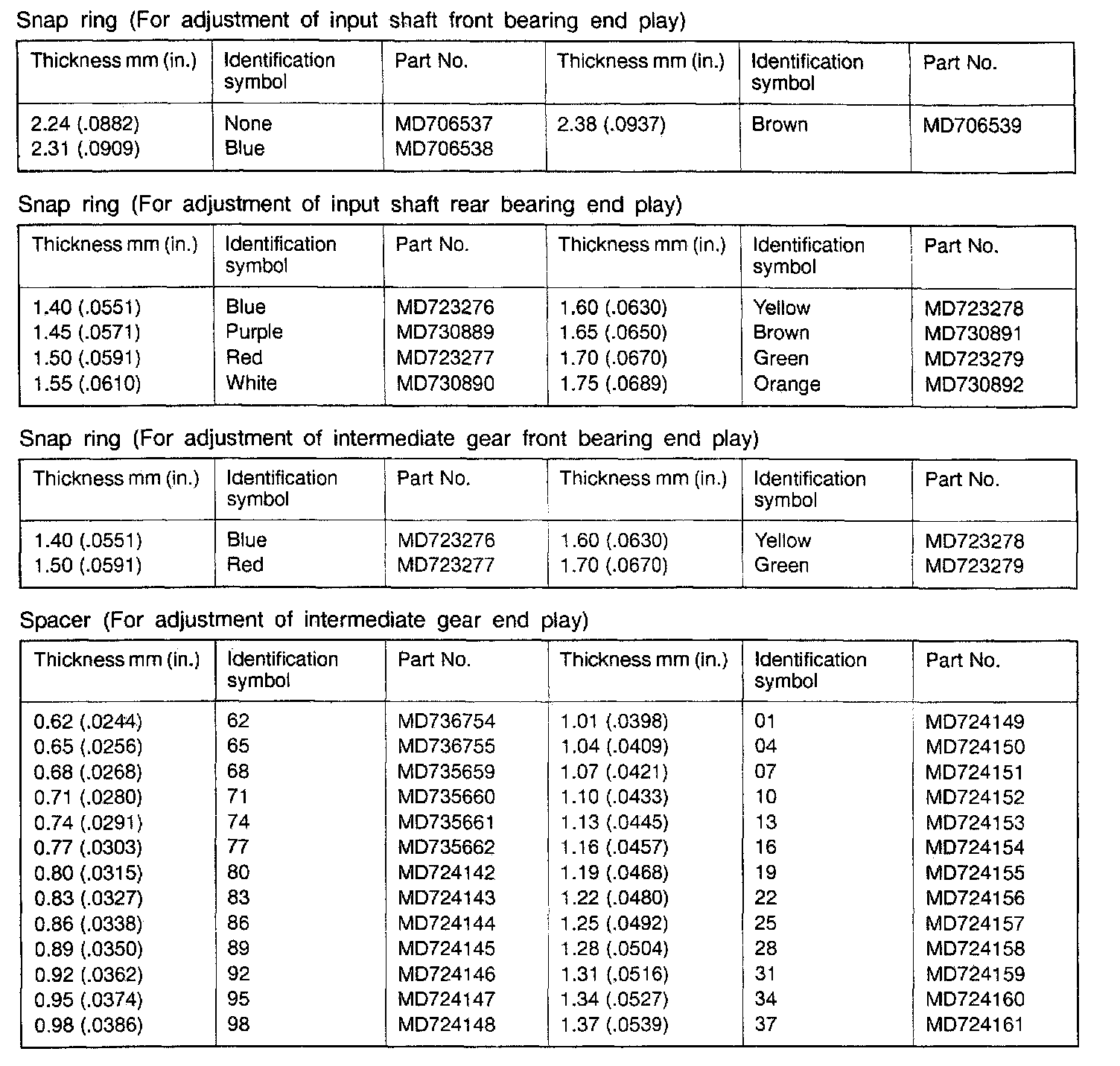 F5M31 5-spd M/T, Input Shaft Bearings & Intermediate Gear End Play: