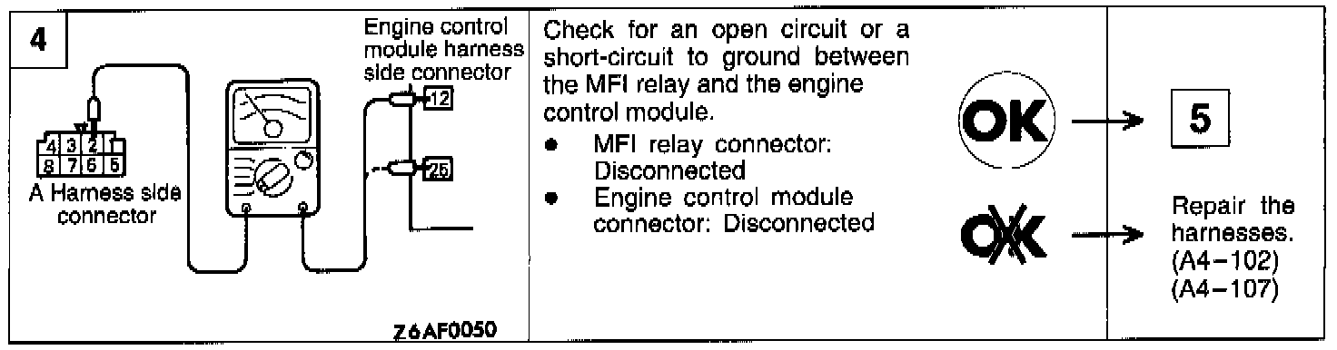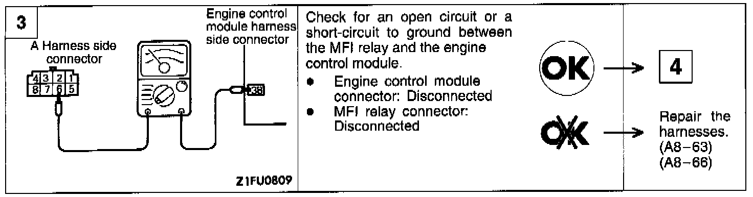 1. Remove the Multiport Fuel Injection (MFI) relay and check for continuity between the MFI relay terminals.