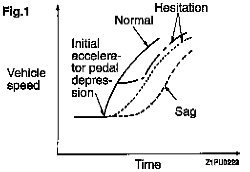 This chart graphically depicts "normal," "sag," and "hesitation" acceleration modes.