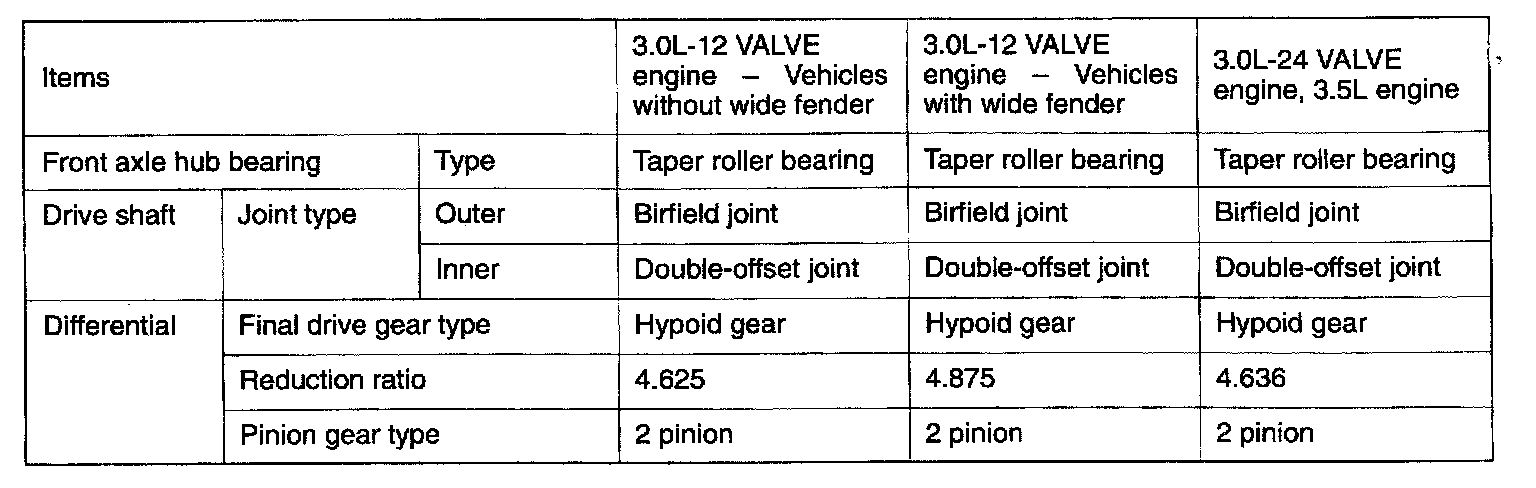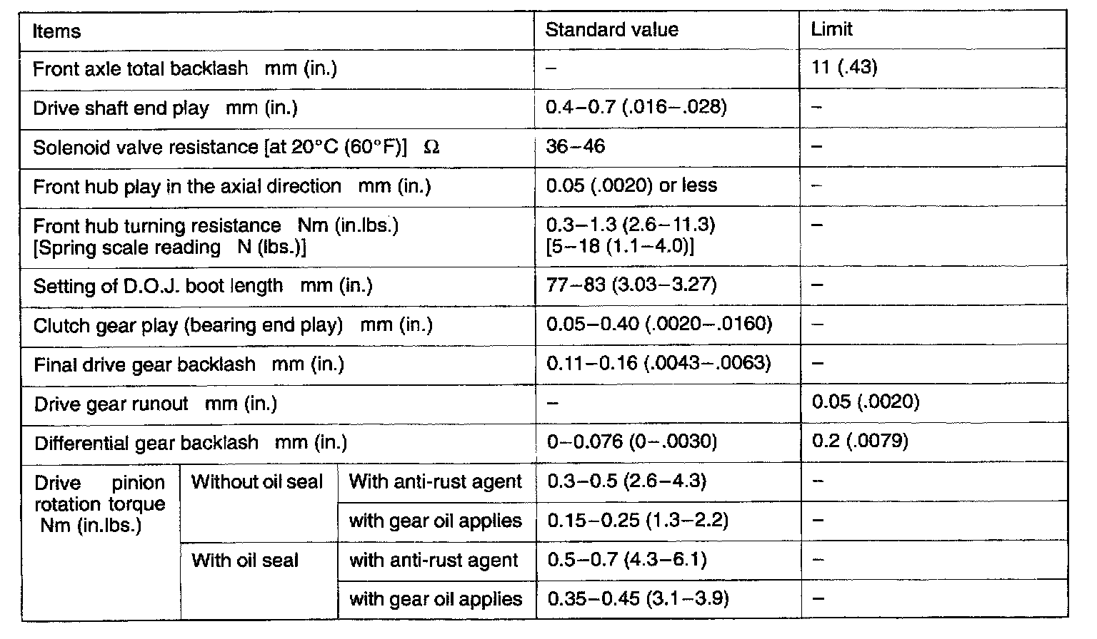 4WD Front Differential Standard Values & Limits: