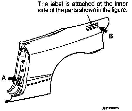 1. When repainting original parts, do so after first masking the theft-protection label, and, after painting, be sure to peel off the masking tape.