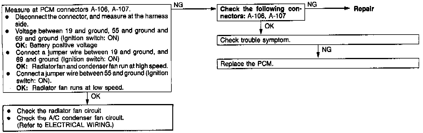 Radiator, A/C Condenser Fan Motor Relay System Inspection