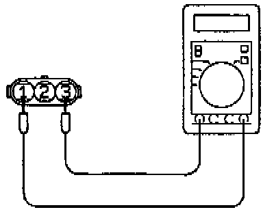 2. Measure the resistance between the throttle position sensor side connector terminal 1 and terminal 3.