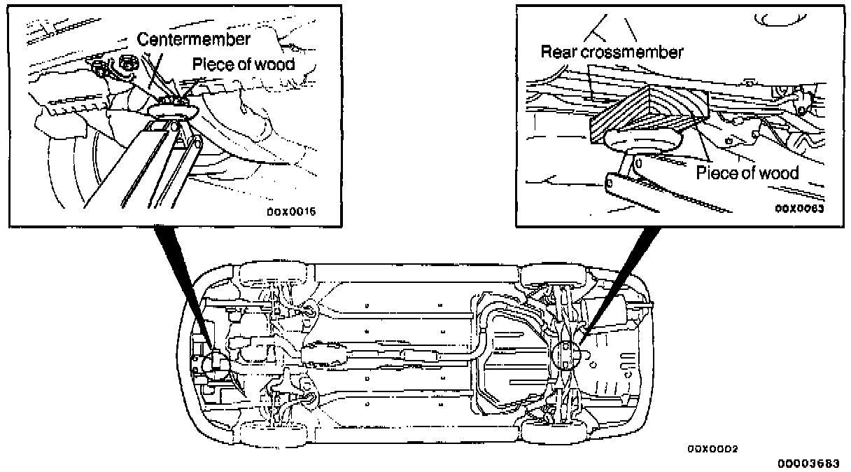 Caution: For lifting, put rubber or similar between the side sill and rigid rack, or the side sill area will be damaged.
