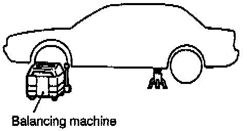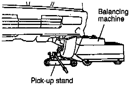 2. Jack up the rear wheels, and then, after setting a pick-up stand and balancing machine in place, follow the same procedure as for front wheel measurements.