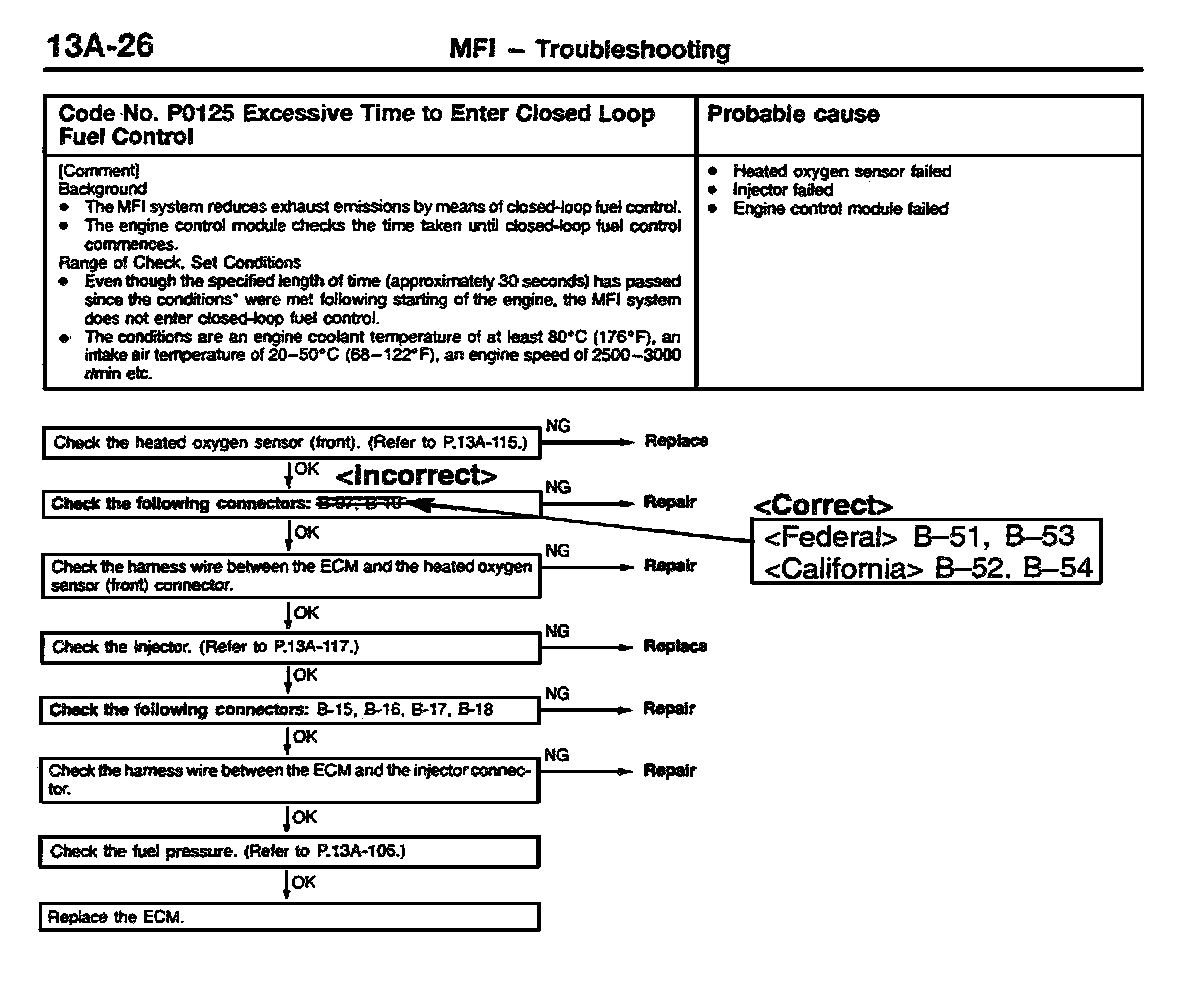 CORRECTED TERMINAL AND CONNECTOR NUMBERS (MFI TROUBLESHOOTING) - SERVICE MANUAL REVISION