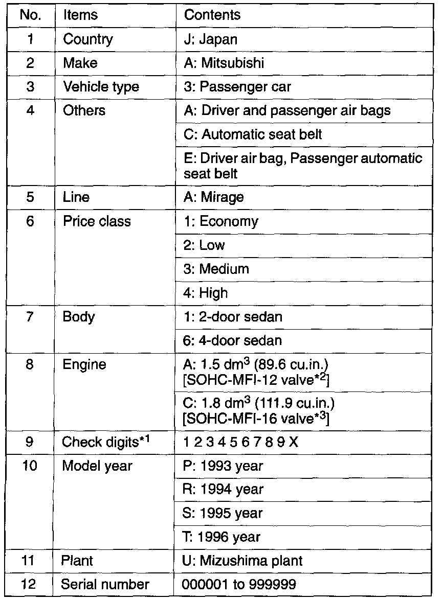 1. *1: Check digit means a single number or letter X used to verify the accuracy of transcription of vehicle identification number.