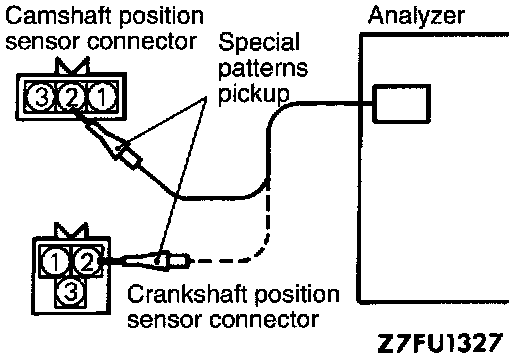 1. Connect the analyzer special patterns pickup to ECM terminal (88) for the camshaft position sensor.