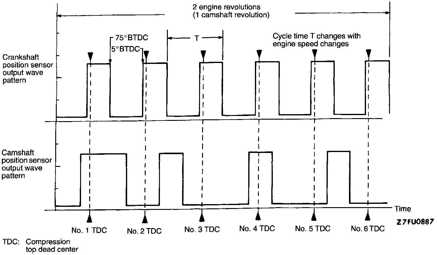 If the crankshaft position sensor output r/min is 0 r/min during cranking when the engine cannot be started, the cause is probably a malfunction of the crankshaft position sensor or a broken timing belt.