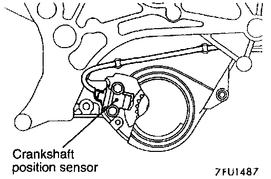 If an impact is suddenly felt during driving or the engine suddenly stalls during idling, try shaking the crankshaft position sensor during idling. If the engine stalls, the cause is probably improper or incomplete contact of the crankshaft position sensor's connector.