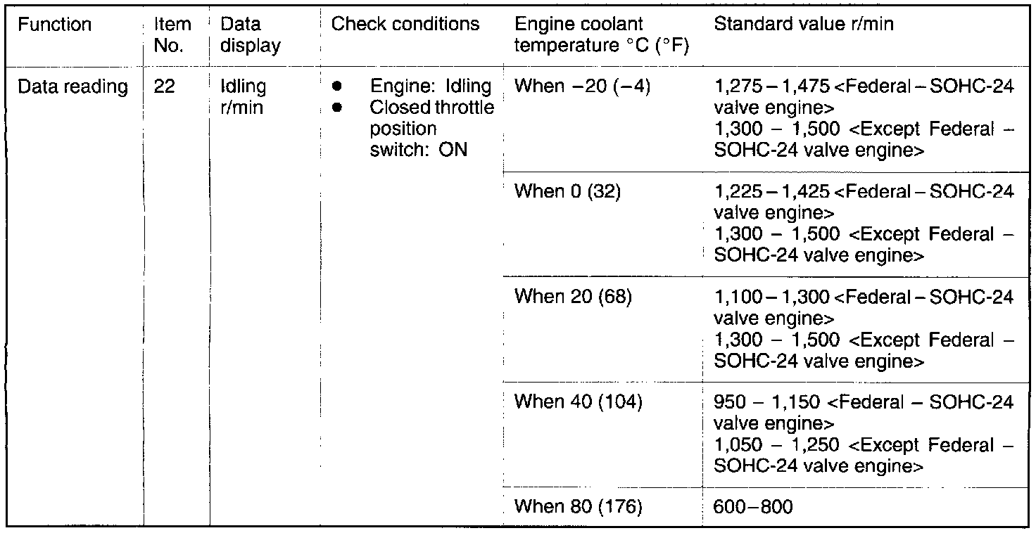 If idling is possible even though the crankshaft position sensor indicated r/min is outside the standard value, the cause is usually a malfunction of something other than the crankshaft position sensor.