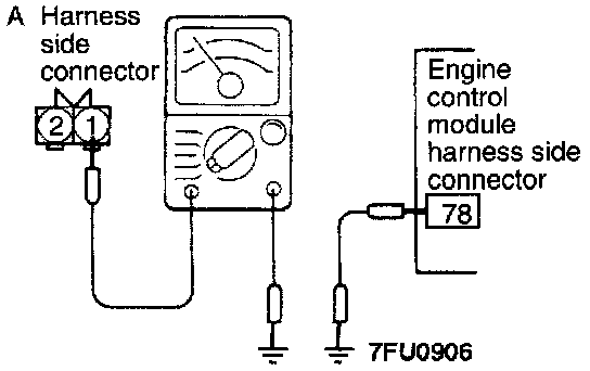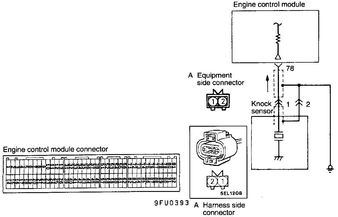 STEP 1. Check for an open circuit or a short-circuit to ground between the knock sensor and the engine control module.