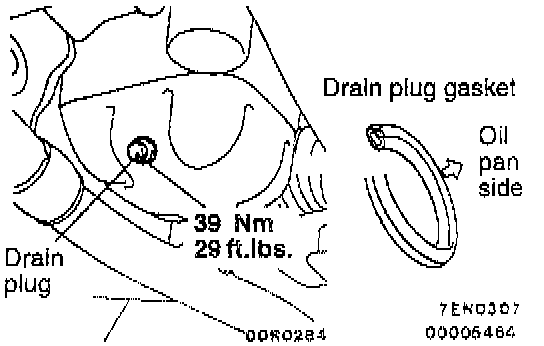 4. Install a new drain plug gasket so that it faces in the direction shown in the illustration, and then tighten the drain plug to 40 Nm (29 ft. lbs.).