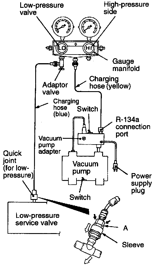 12. Turn the vacuum pump adaptor switch to the R-134a side to start the vacuum pump.