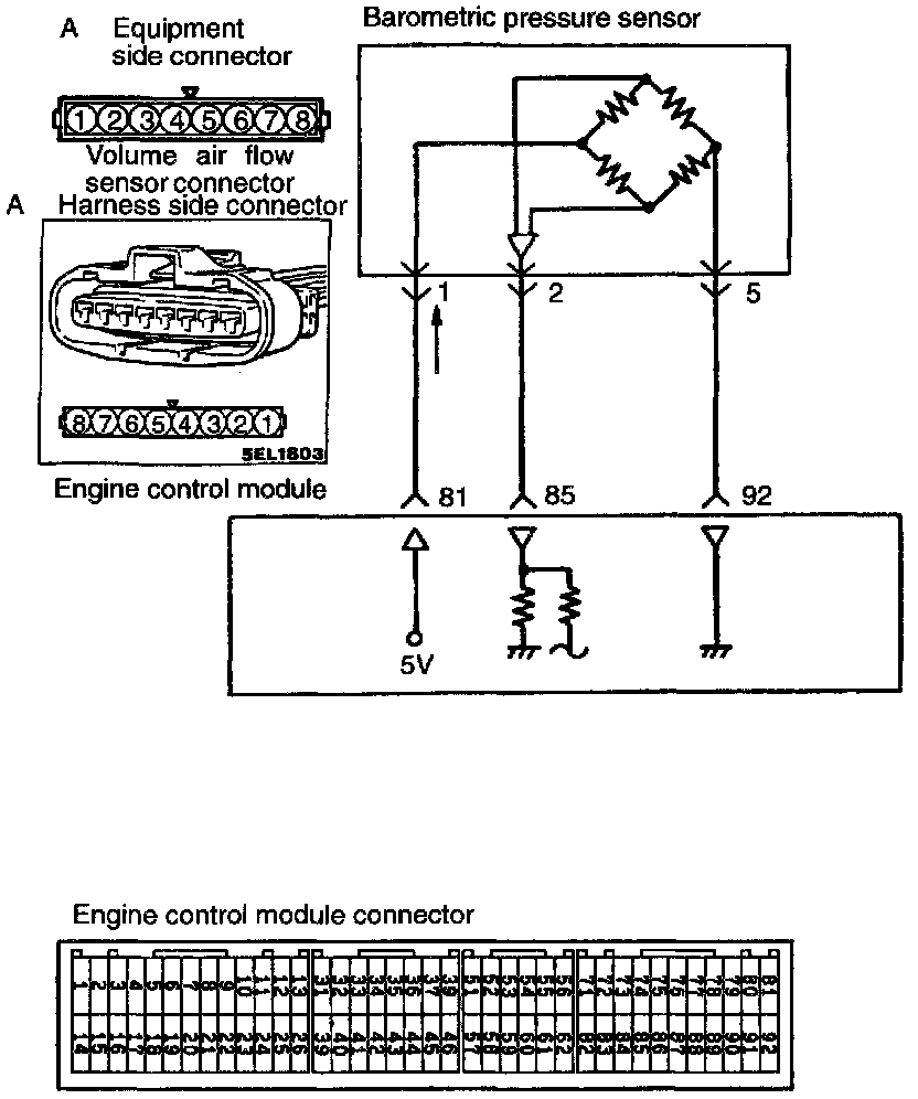 - The 5 V power in the engine control module is supplied to the barometric pressure sensor. Through the circuit in the sensor, it is grounded in the engine control module.