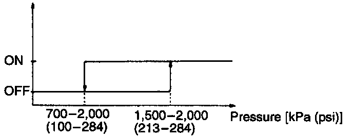 6. Gradually open the shut-off valve and reduce the hydraulic pressure; then check whether or not the hydraulic pressure that deactivates the switch is the standard value.