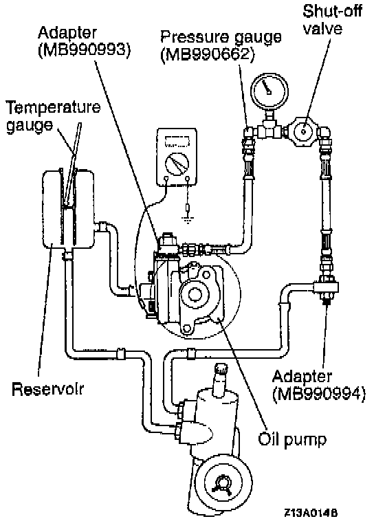 1. Disconnect the pressure hose from the oil pump, and then connect the special tools.