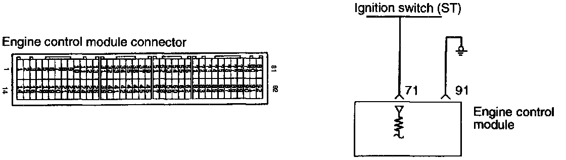 - The ignition switch (MTX) inputs a high signal to the engine control module while the engine is cranking. The engine control module provides fuel injection control, etc., at engine start-up based on this signal.