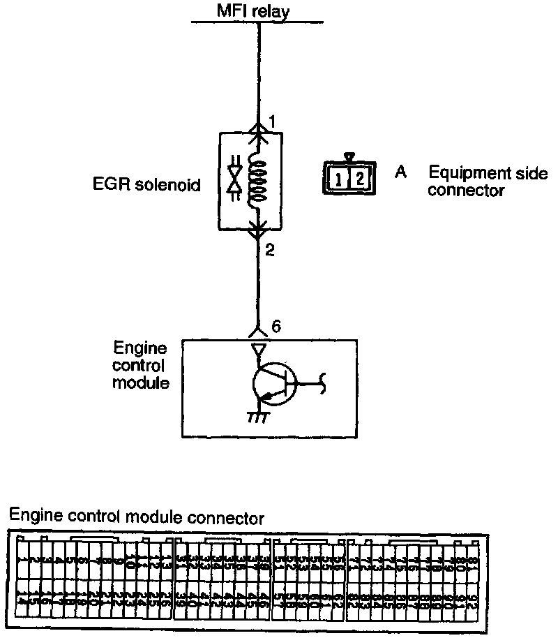 - Power supply from the battery is sent through the MFI relay to the EGR solenoid. When the engine control module turns off the power transistor inside the module, current no more flows through the coil and EGR valve operating negative pressure leaks.