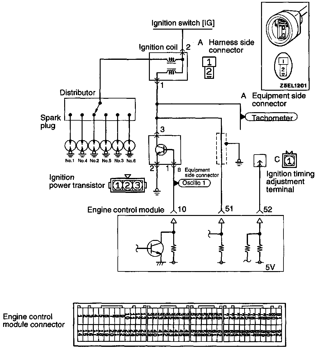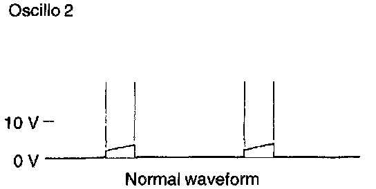2. Control signal of ignition power transistor Connect the probe to oscilloscope pick-up point 2 as shown in the circuit diagram, and check the control signal of the ignition power transistor.