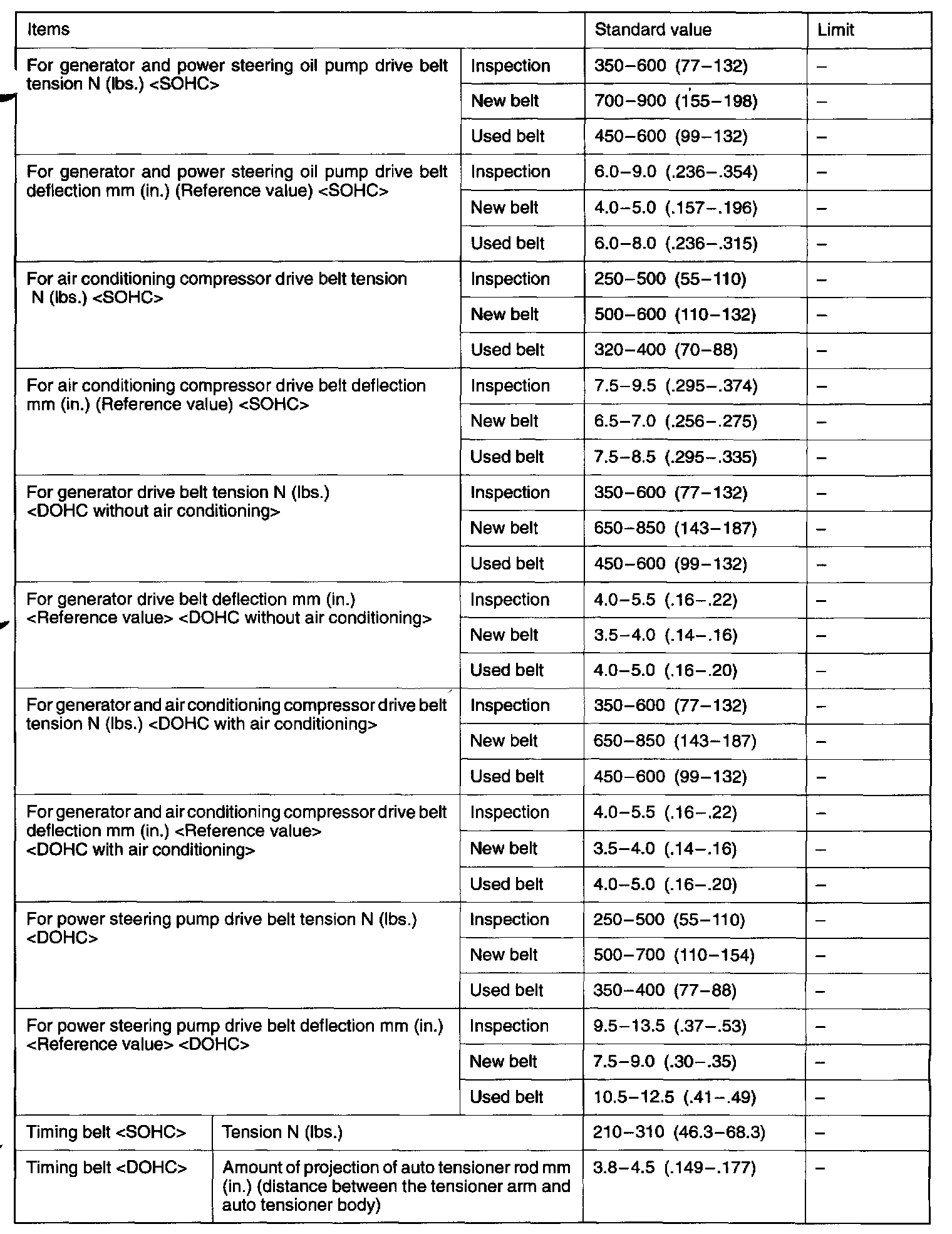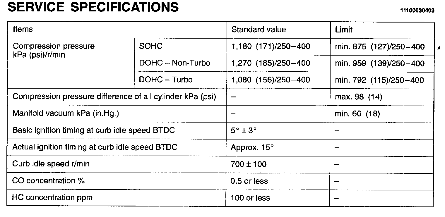 Engine-On Vehicle Service Specifications