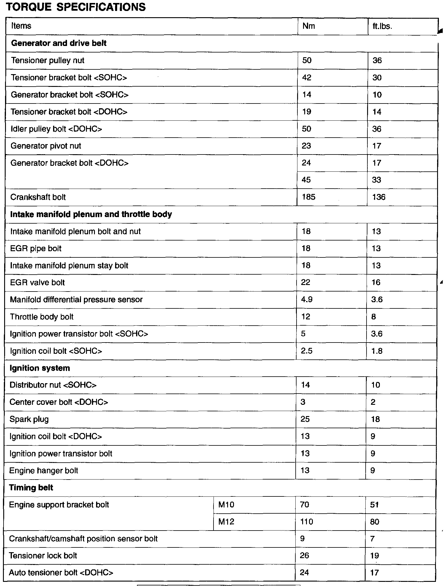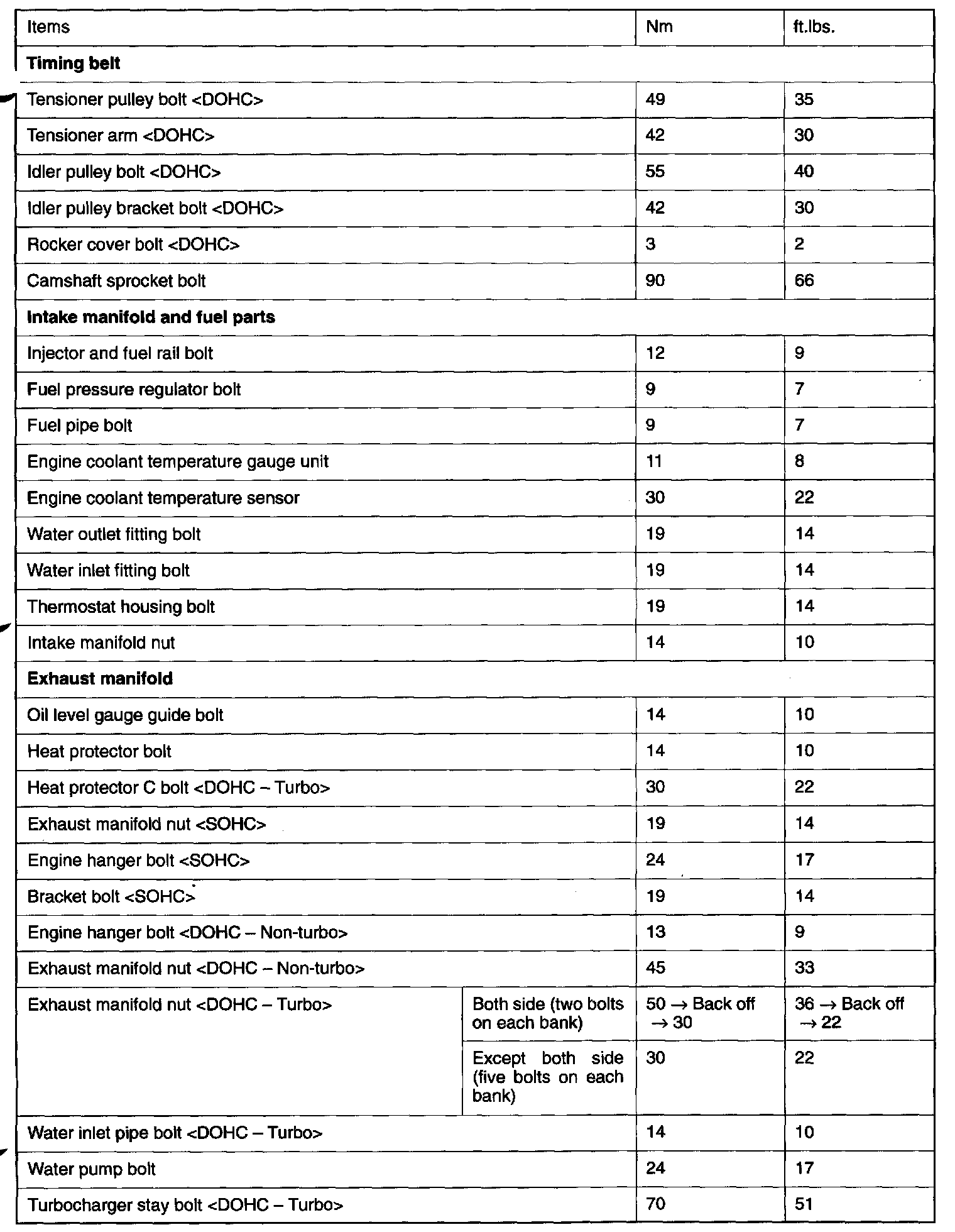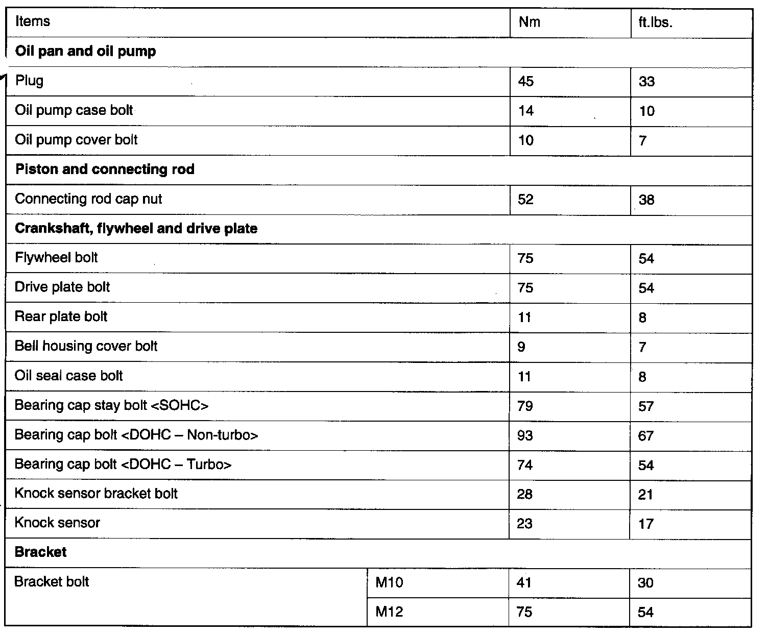 Fastener Tightening Specifications