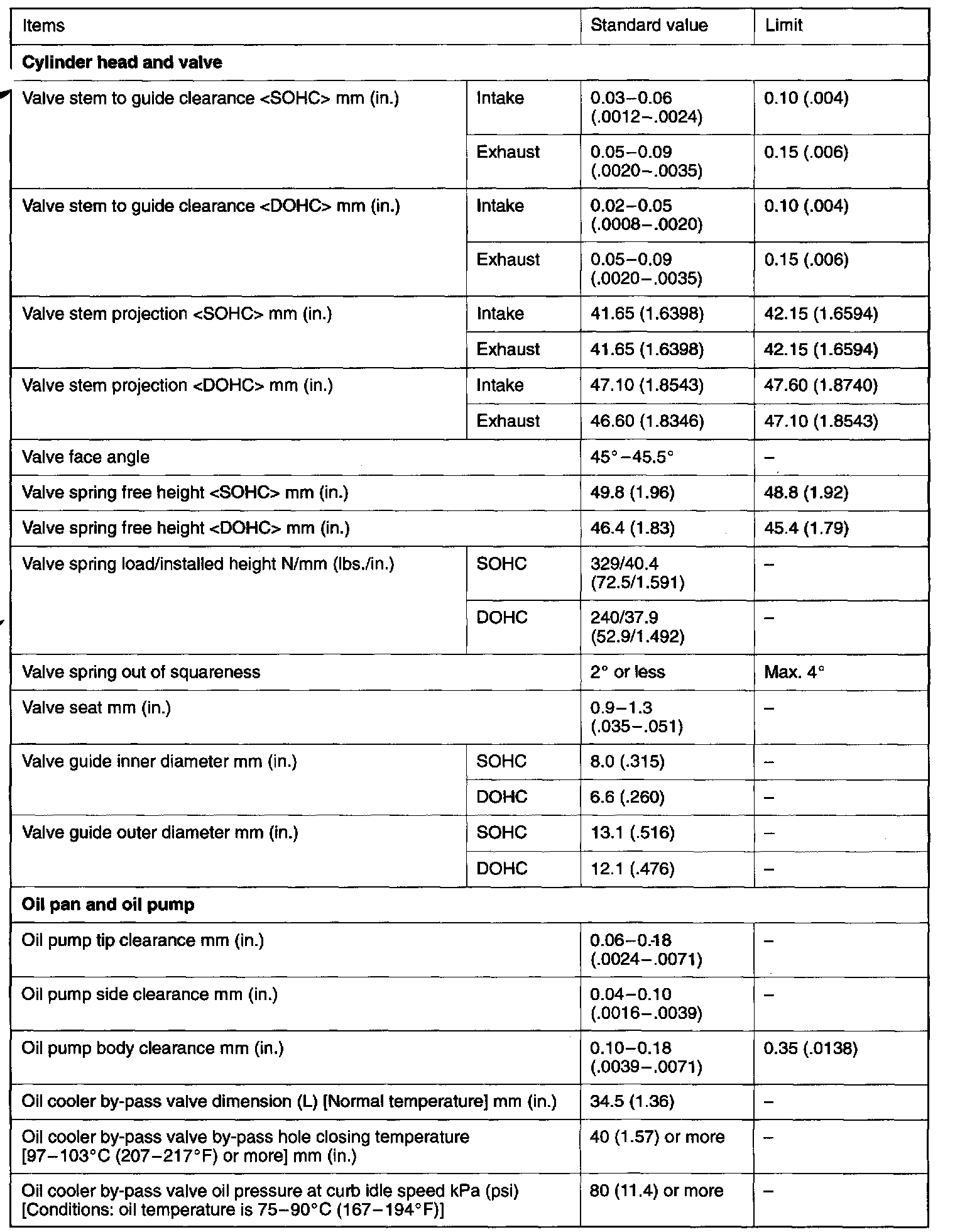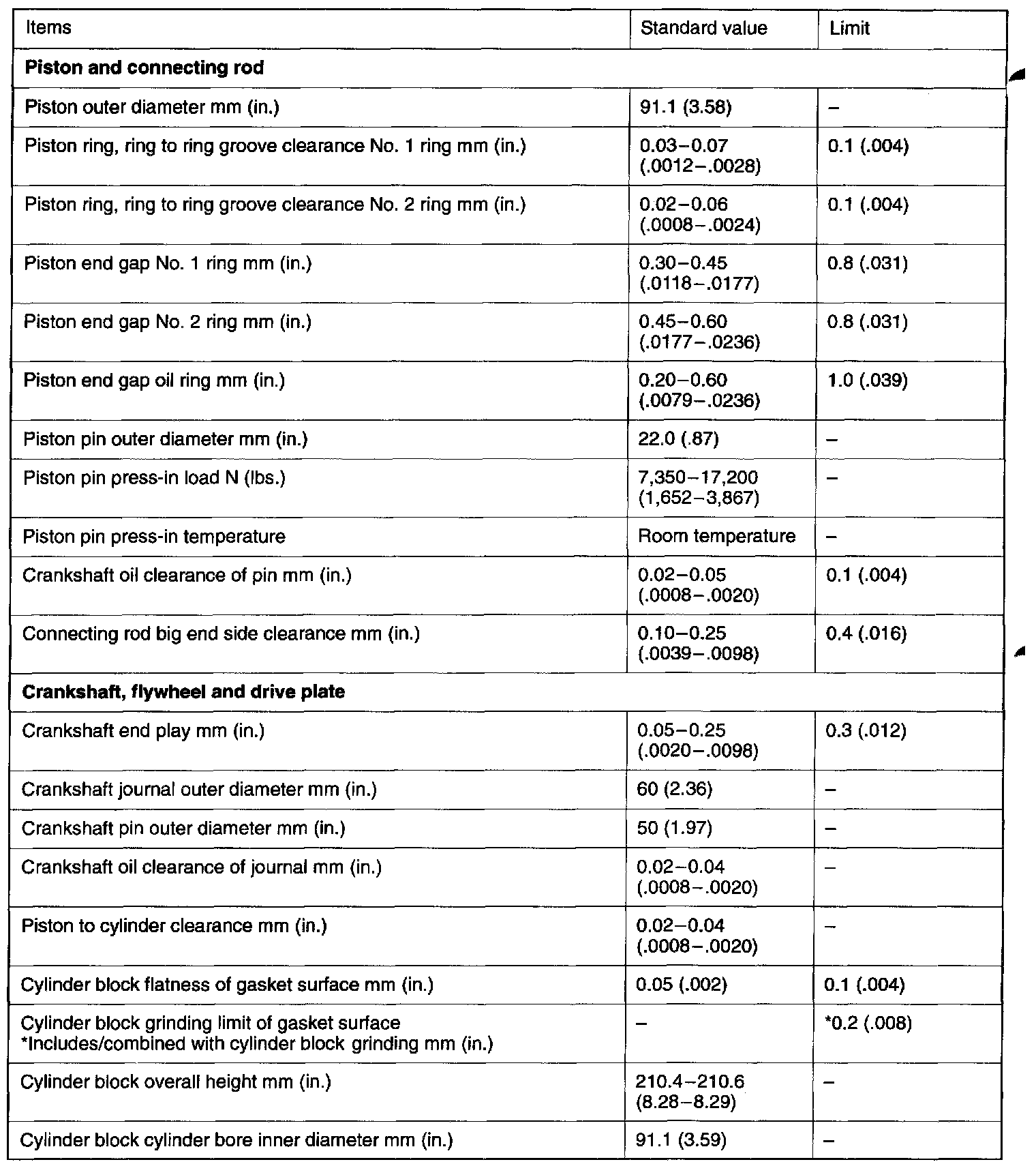 Engine-Overhaul Specifications