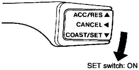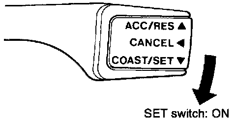 NOTE: Even if, during acceleration, the vehicle speed reaches or exceeds the high limit [approximately 200 km/h (124 mph)], acceleration will continue, however, when the switch is released, the set speed ("memorized speed") will become the high limit of the vehicle speed.