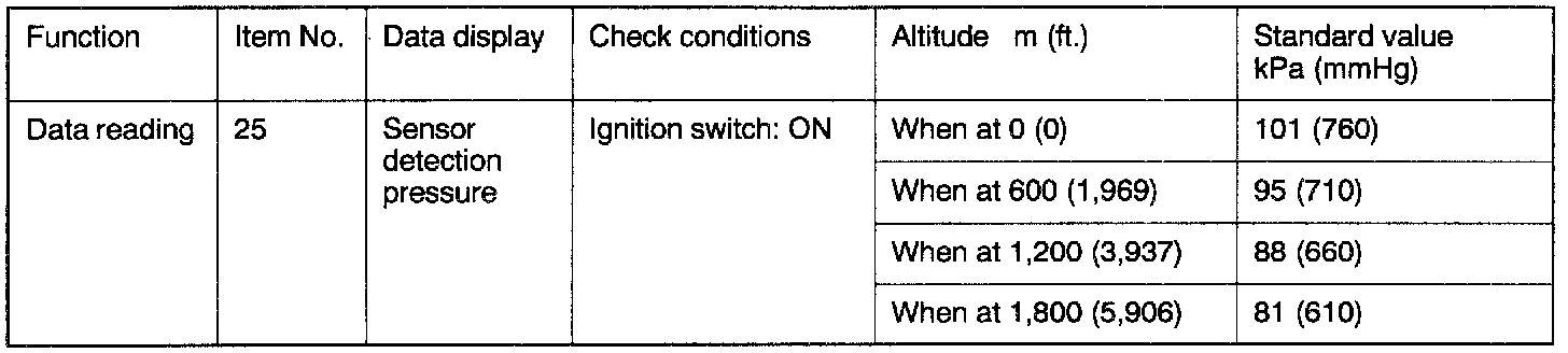 If, during high-speed driving, there is a noticeable sharp drop of the displayed pressure of the barometric-pressure sensor, check for clogging of the air cleaner.