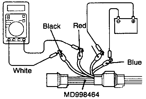 (6) Connect a digital voltmeter to terminal (2) (black clip of the special tool) and terminal (4) (white clip).
