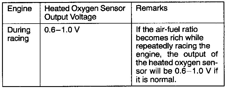 If the heated oxygen sensor output voltage is outside the standard value even though the results of the checking of the heated oxygen sensor are normal, the cause is probably a malfunction of a component related to mixture control.