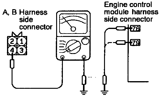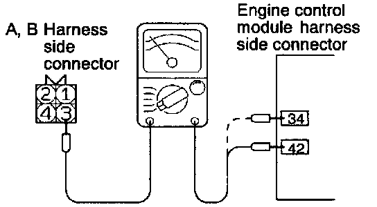 (1) Disconnect the connector to the heated oxygen sensor, then use the special tool (test harness) to make connections with the connection on the heated oxygen sensor side.