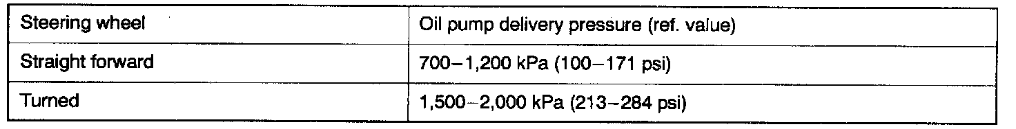 Standard value: 0.69 - 1.18 MPa (100 - 171 psi)