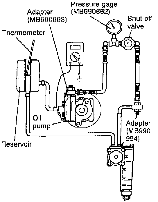 1. Disconnect the pressure hose from the oil pump, and then connect the special tools.