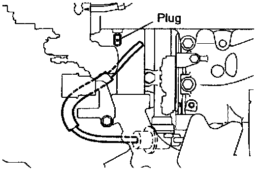 9. Disconnect the vacuum hose (blue stripe. from the intake manifold and then plug the nipple.