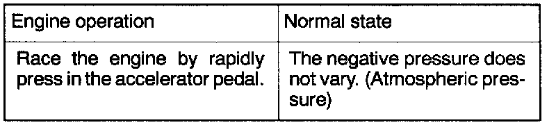 4. When a negative pressure of 31 kPa (9.1 in.Hg) is applied during idling, check that the engine stops or idles unstably.