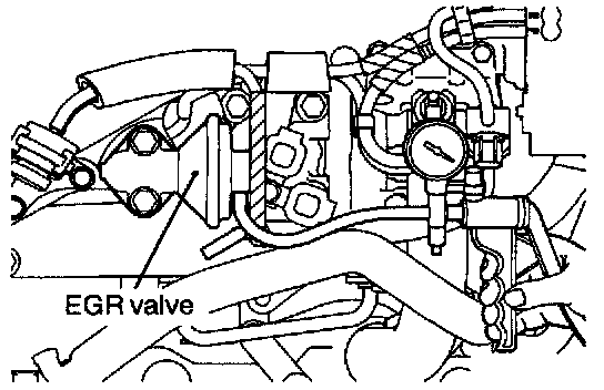1. Disconnect the green striped vacuum hose from the EGR valve, and using a three-way terminal, connect a hand vacuum pump as shown.