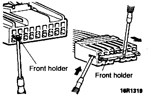 1. Insert screwdriver [1.4 mm (0.06 in.) width] as shown in the figure disengage front holder and remove it.